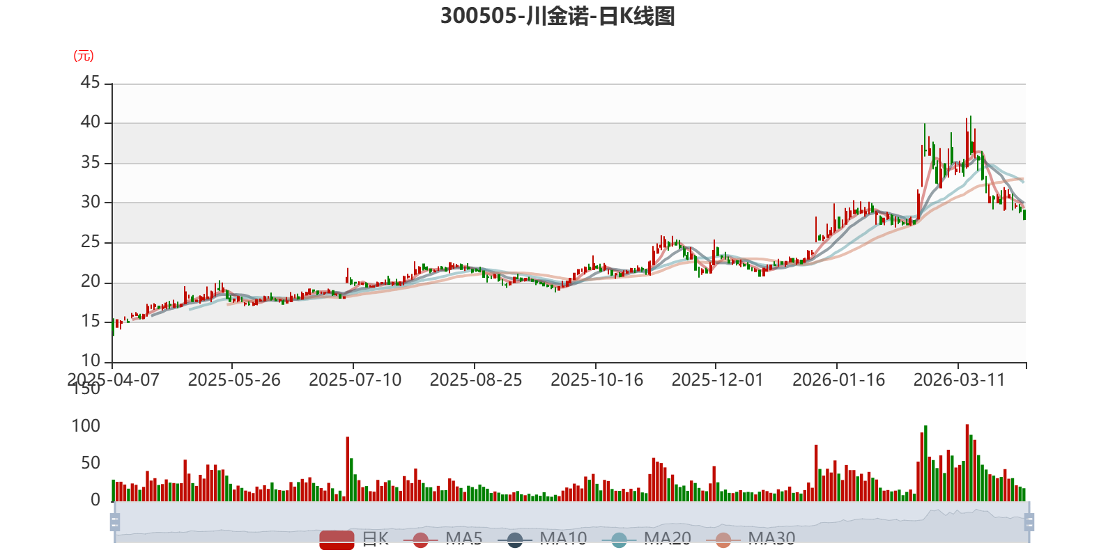 中证智能财讯川金诺(300505)4月3日晚间披露业绩预告,预计2026年一季度实现营业收入9.5亿元至10.5亿元,同比增长31.79%-45.66%;归母净利润3800万元至4800万元,同比下降33.35%-47.24%;扣非净利润预计3500万元-4500万元,同比下降31.68%-46.86%。以4月3日收盘价计算,川金诺目前市盈率(TTM)约为17.86倍-18.29倍,市净率(LF)约2.63倍,市销率(TTM)约1.76倍。
