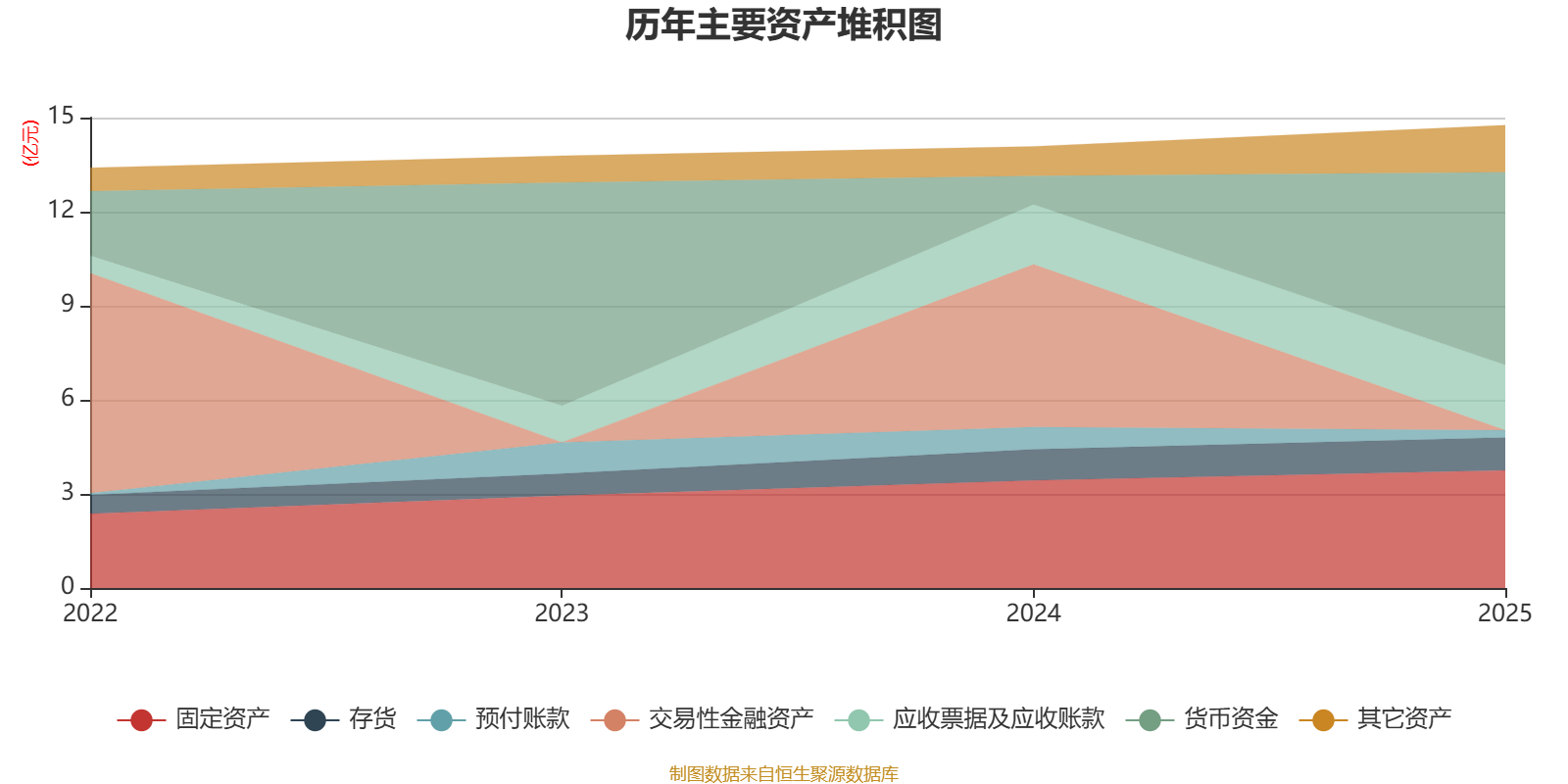 资产重大变化方面,截至2025年12月,公司交易性金融资产较上期末减少100%,占公司总资产比重下降36.86个百分点;货币资金较上期末增加571.39%,占公司总资产比重上升35.16个百分点;预付账款较上期末减少67.05%,占公司总资产比重下降3.46个百分点;固定资产较上期末增加9.21%,占公司总资产比重上升1.02个百分点。