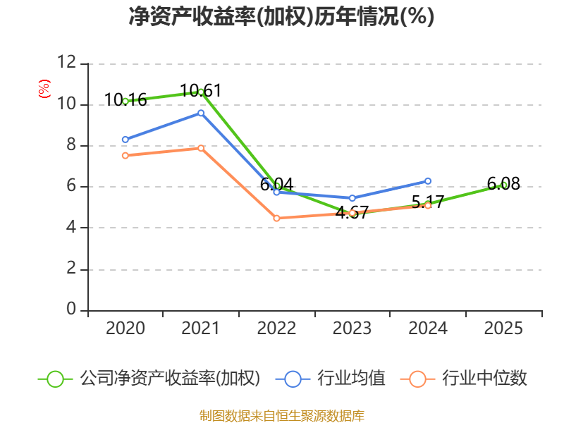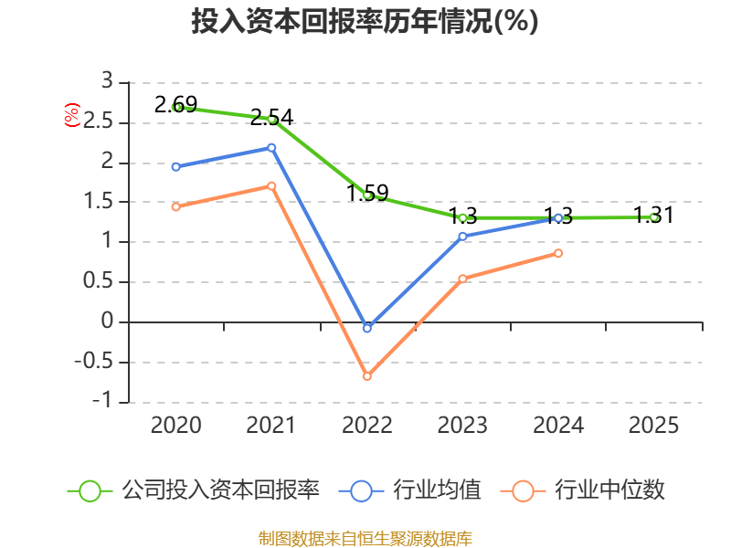 数据显示,2025年公司加权平均净资产收益率为6.08%,较上年同期上升0.91个百分点。公司2025年投入资本回报率为1.31%,较上年同期上升0.01个百分点。
