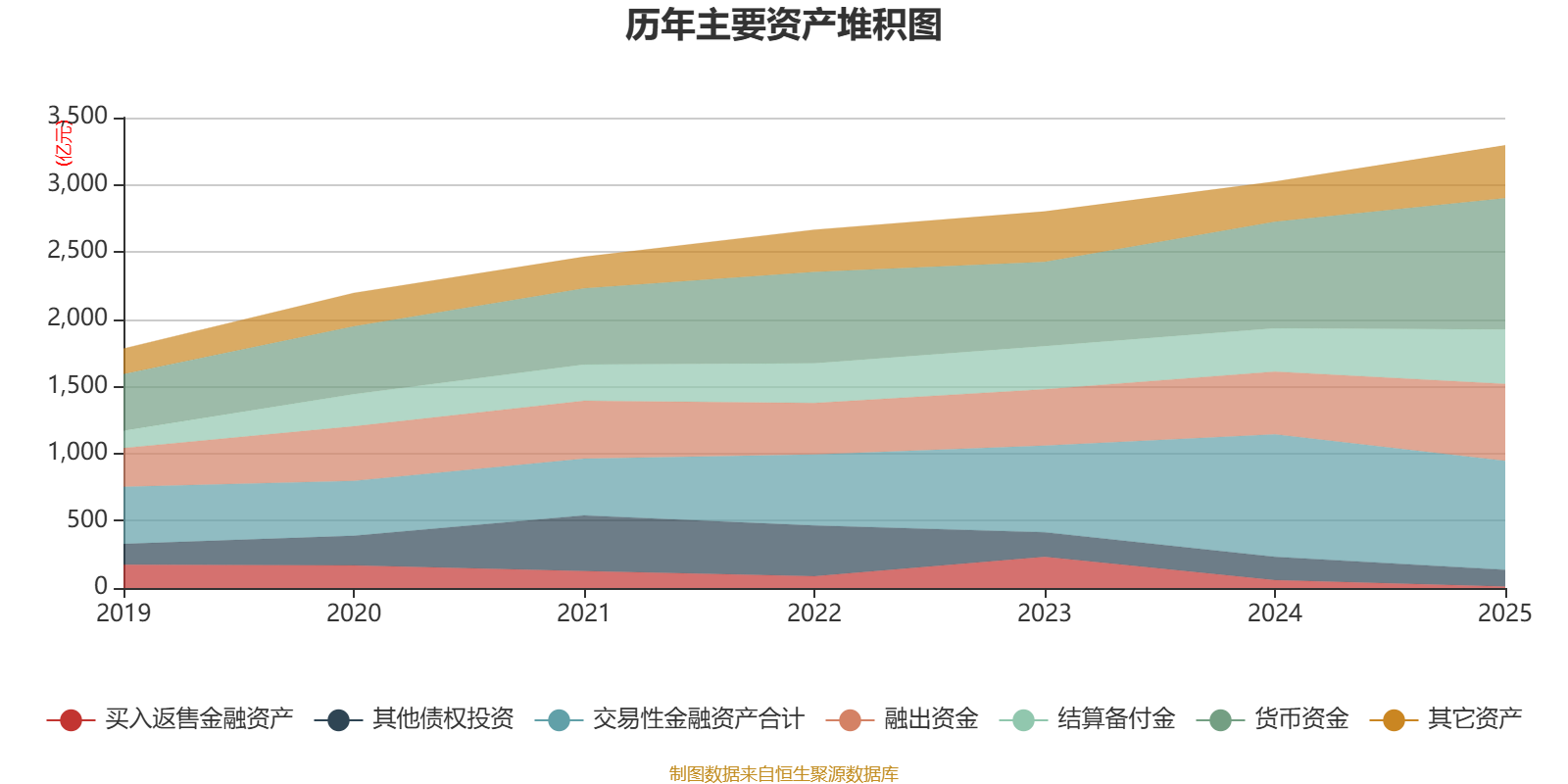 资产重大变化方面,截至2025年末,公司交易性金融资产合计较上年末减少10.99%,占公司总资产比重下降5.51个百分点;货币资金较上年末增加23.06%,占公司总资产比重上升3.4个百分点;其他流动资产较上年末增加617.9%,占公司总资产比重上升2.74个百分点;其他债权投资较上年末减少27.98%,占公司总资产比重下降1.94个百分点。