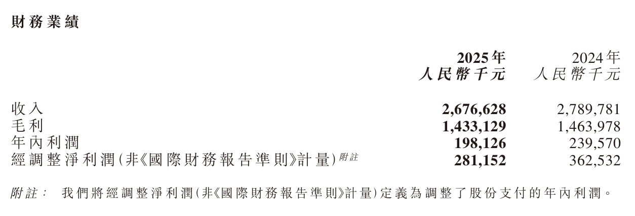 职业教育机构粉笔(02469.HK)近日发布2025年业绩报告。报告期内,粉笔营业收入26.77亿元(人民币,下同),同比下降4.1%;净利润1.98亿元,同比下降17.3%。