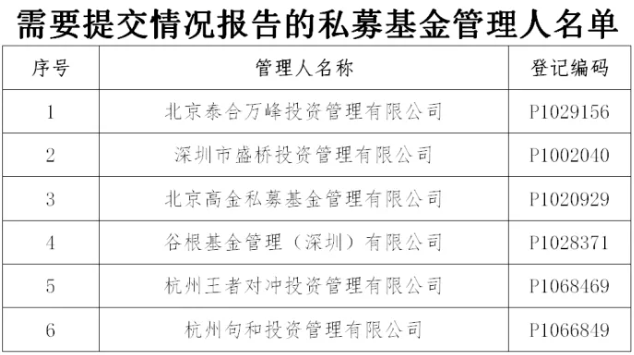 中基协:无法与北京泰合万峰投资管理有限公司等6家私募基金管理人取得有效联系