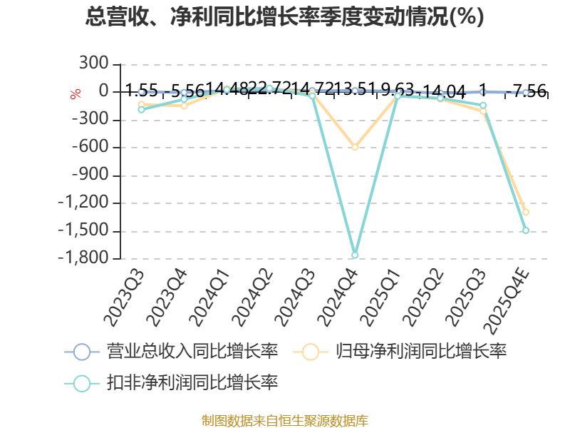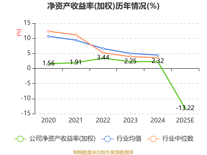 数据显示,2025年公司加权平均净资产收益率为-13.22%,较上年同期下降15.54个百分点。