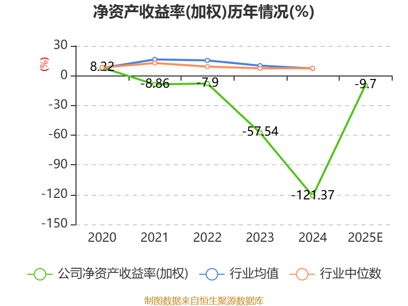 数据显示,2025年公司加权平均净资产收益率为-9.7%,较上年同期上升111.67个百分点。