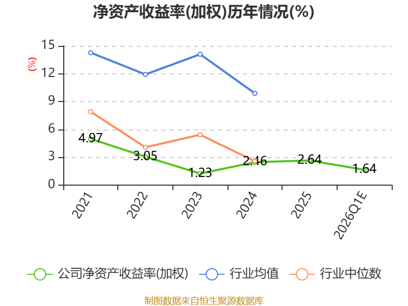 数据显示,2026年一季度公司加权平均净资产收益率为1.64%,较上年同期下降0.21个百分点。