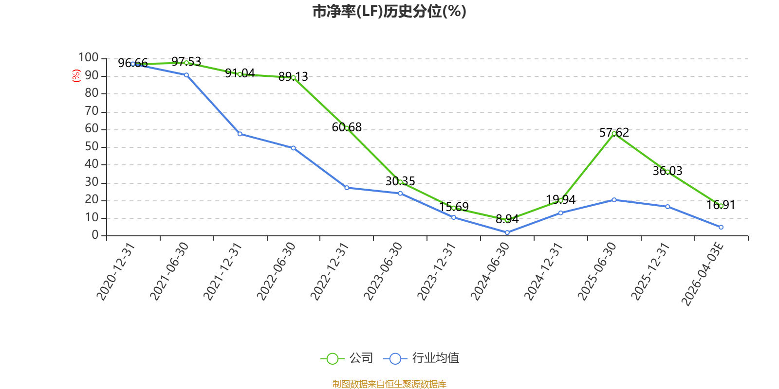 市盈率、市净率为负时,不显示当期分位数,会导致折线图中断。