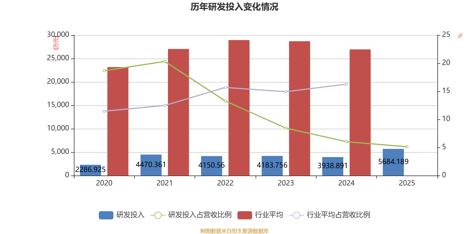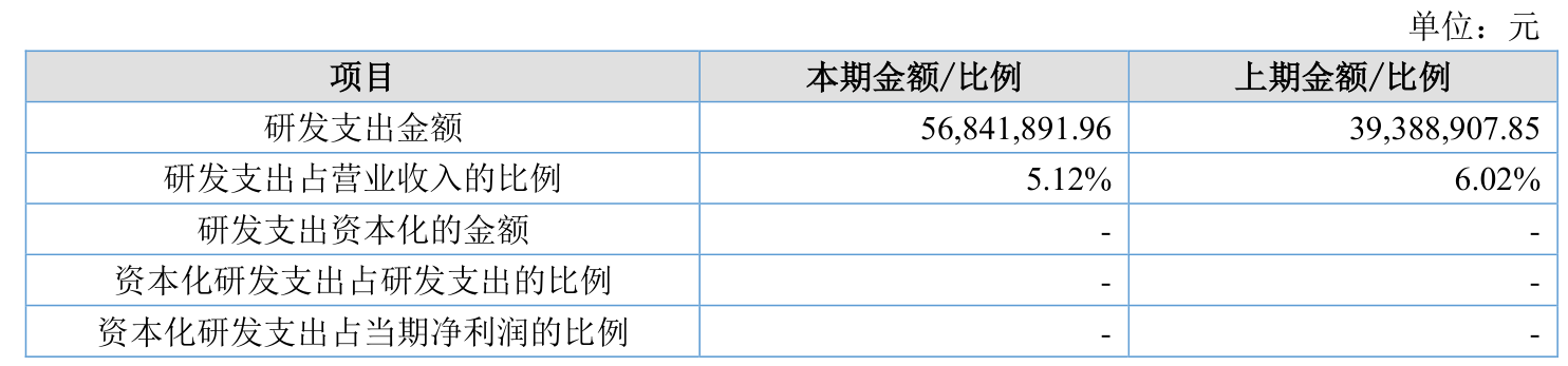 2025年全年,公司研发投入金额为5684.19万元,同比增长44.31%;研发投入占营业收入比例为5.12%,相比上年同期下降0.9个百分点。