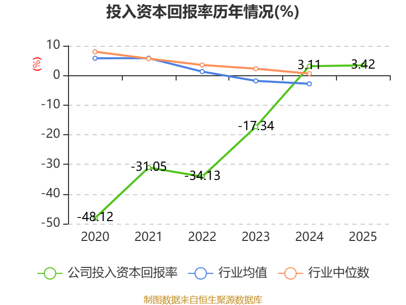 数据显示,2025年公司加权平均净资产收益率为3.08%,较上年同期下降0.43个百分点。公司2025年投入资本回报率为3.42%,较上年同期上升0.31个百分点。