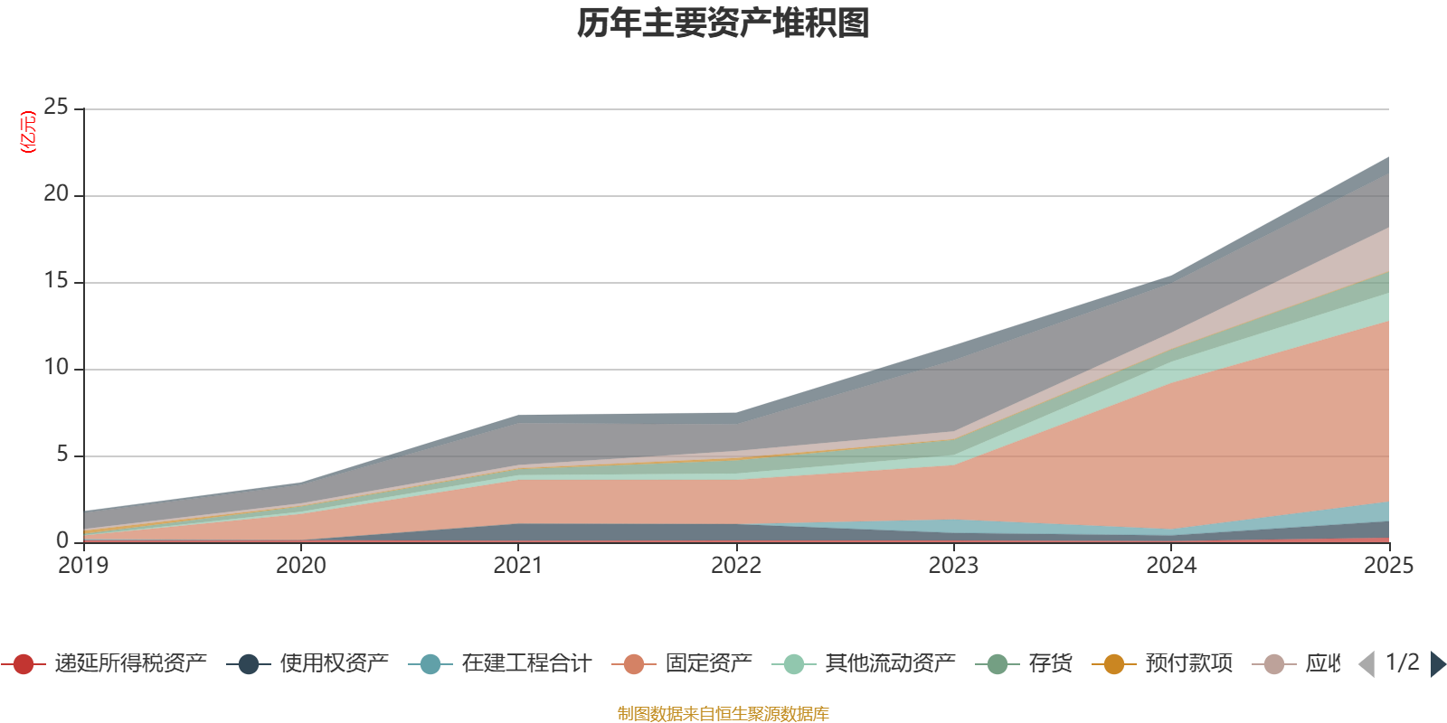 资产重大变化方面,截至2025年末,公司固定资产较上年末增加23.6%,占公司总资产比重下降7.96个百分点;应收票据及应收账款较上年末增加167.35%,占公司总资产比重上升5.25个百分点;货币资金较上年末增加8.57%,占公司总资产比重下降4.63个百分点;在建工程合计较上年末增加209.04%,占公司总资产比重上升2.7个百分点。