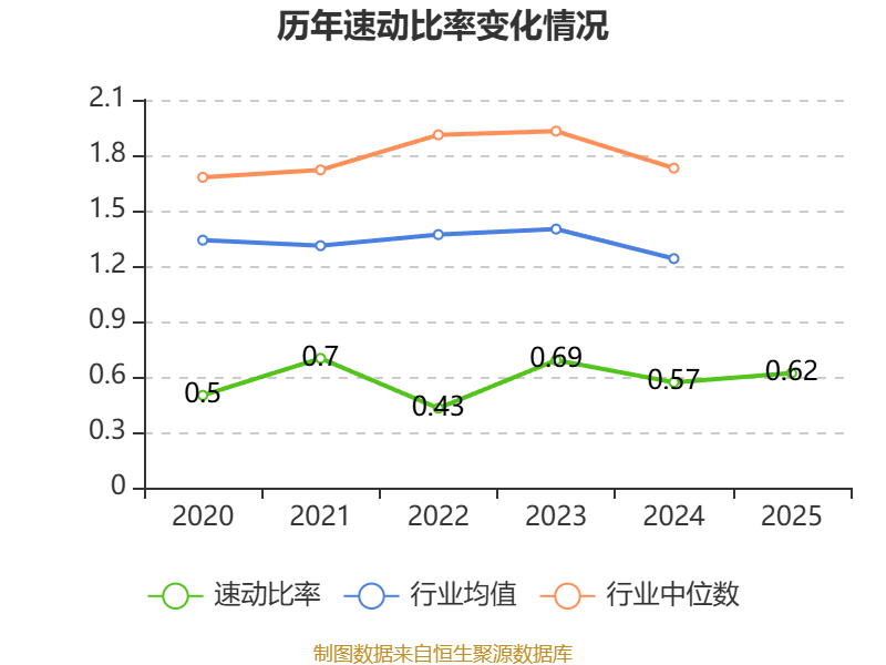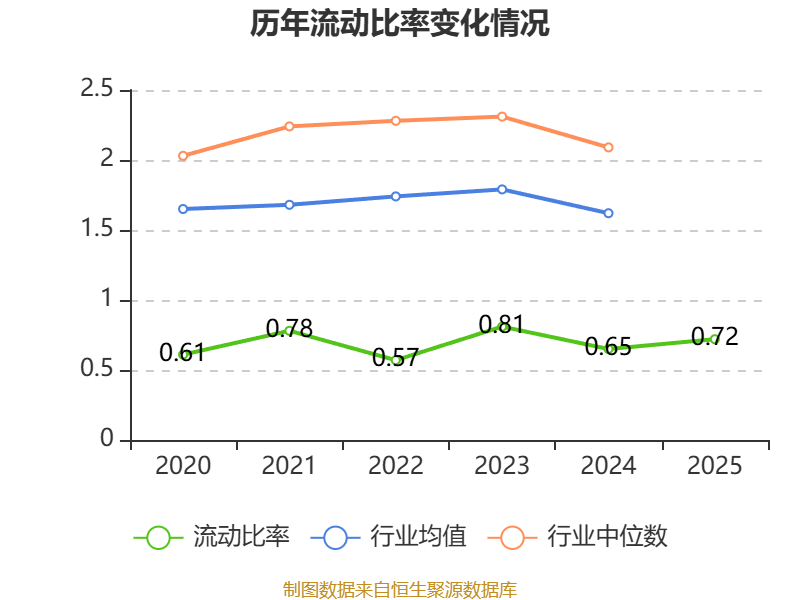 2025年,公司流动比率为0.72,速动比率为0.62。