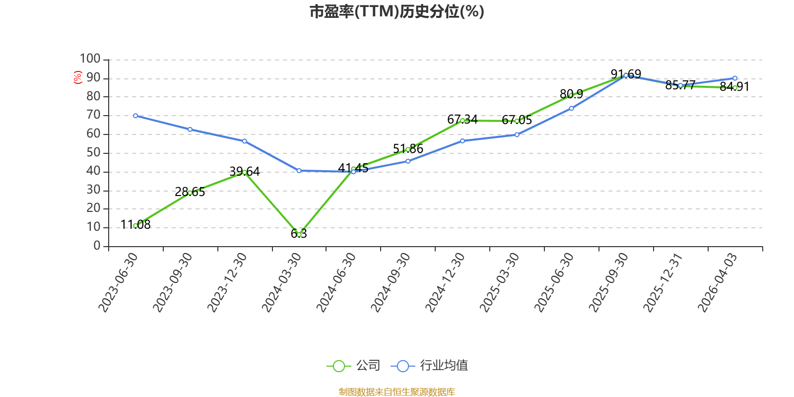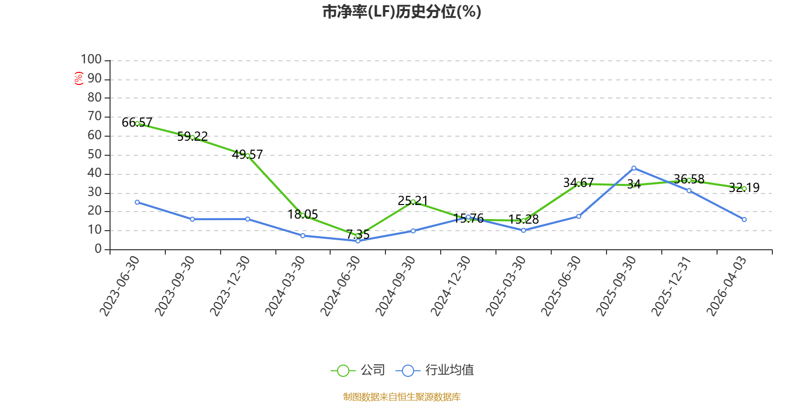 市盈率、市净率为负时,不显示当期分位数,会导致折线图中断。