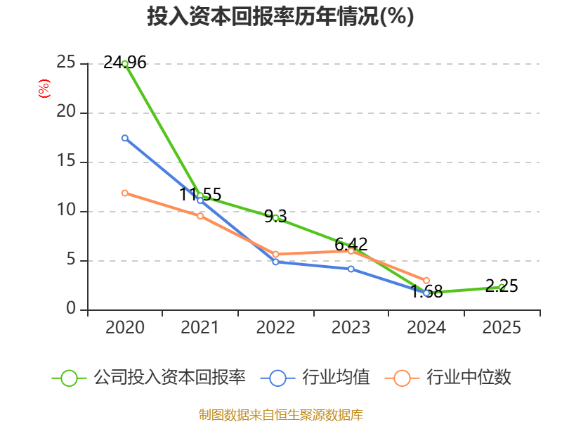 数据显示,2025年公司加权平均净资产收益率为2.3%,较上年同期上升0.64个百分点。公司2025年投入资本回报率为2.25%,较上年同期上升0.57个百分点。