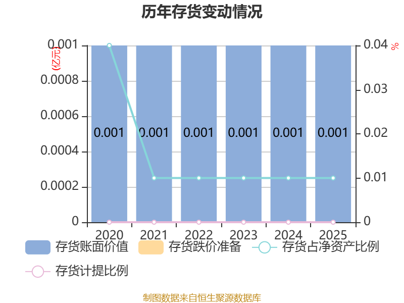 从存货变动来看,截至2025年末,公司存货账面价值为9.46万元,占净资产的0.01%,较上年末增加3020.15元。公司本期没有计提存货跌价准备。