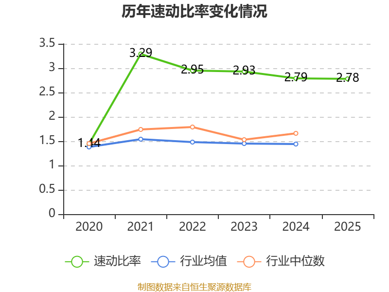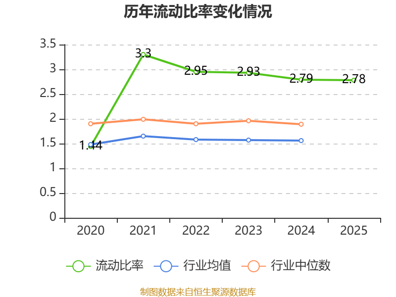 2025年,公司流动比率为2.78,速动比率为2.78。