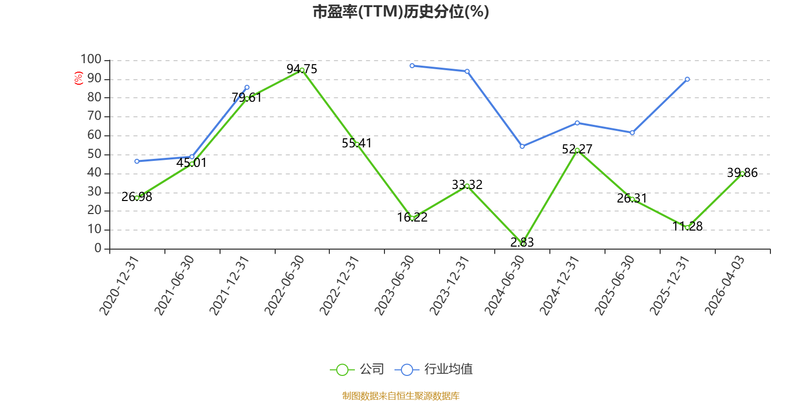 市盈率、市净率为负时,不显示当期分位数,会导致折线图中断。