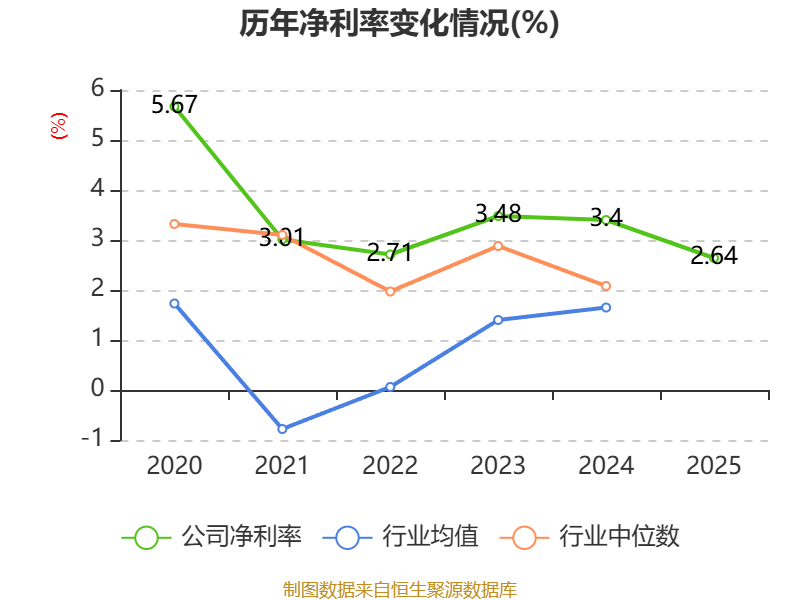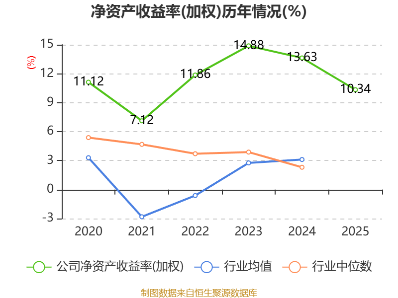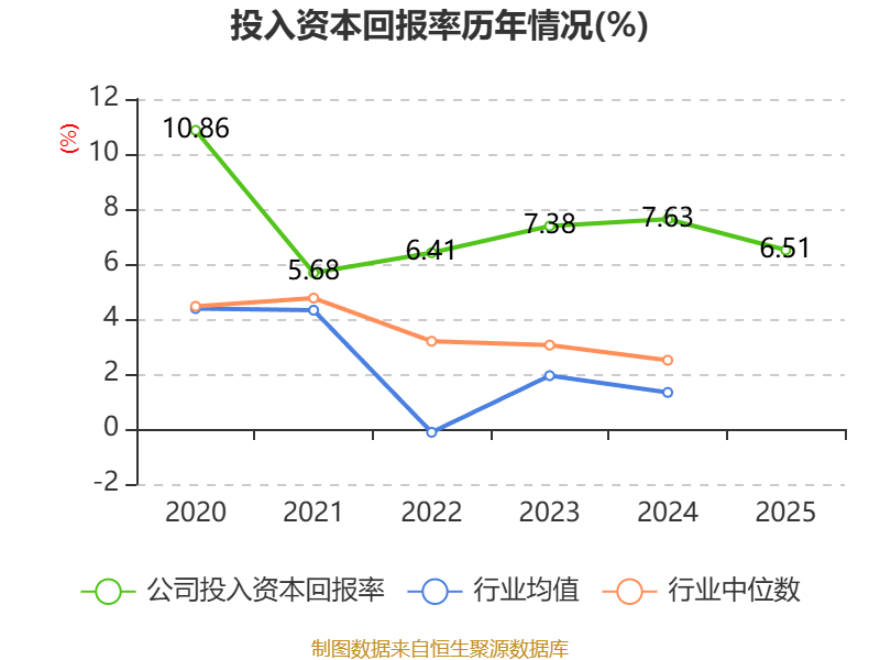 数据显示,2025年公司加权平均净资产收益率为10.34%,较上年同期下降3.29个百分点。公司2025年投入资本回报率为6.51%,较上年同期下降1.12个百分点。