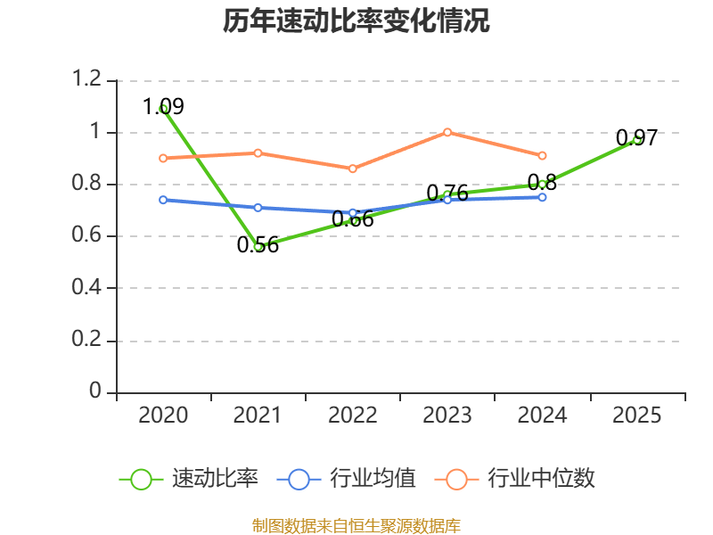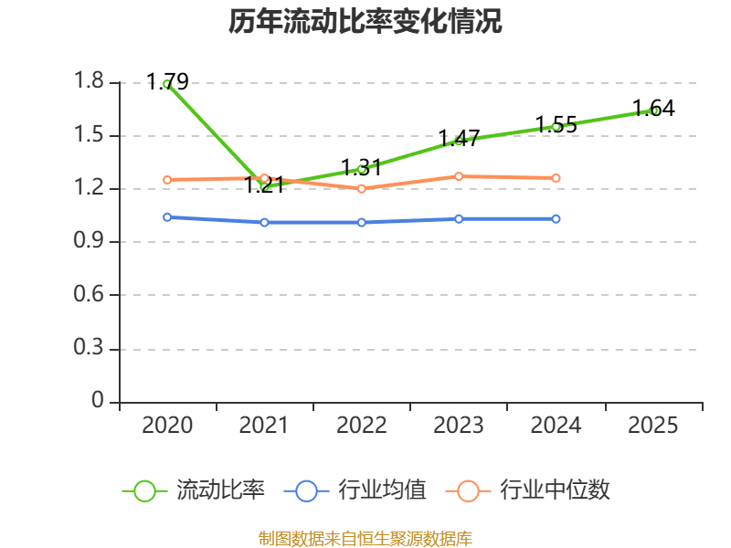 2025年,公司流动比率为1.64,速动比率为0.97。