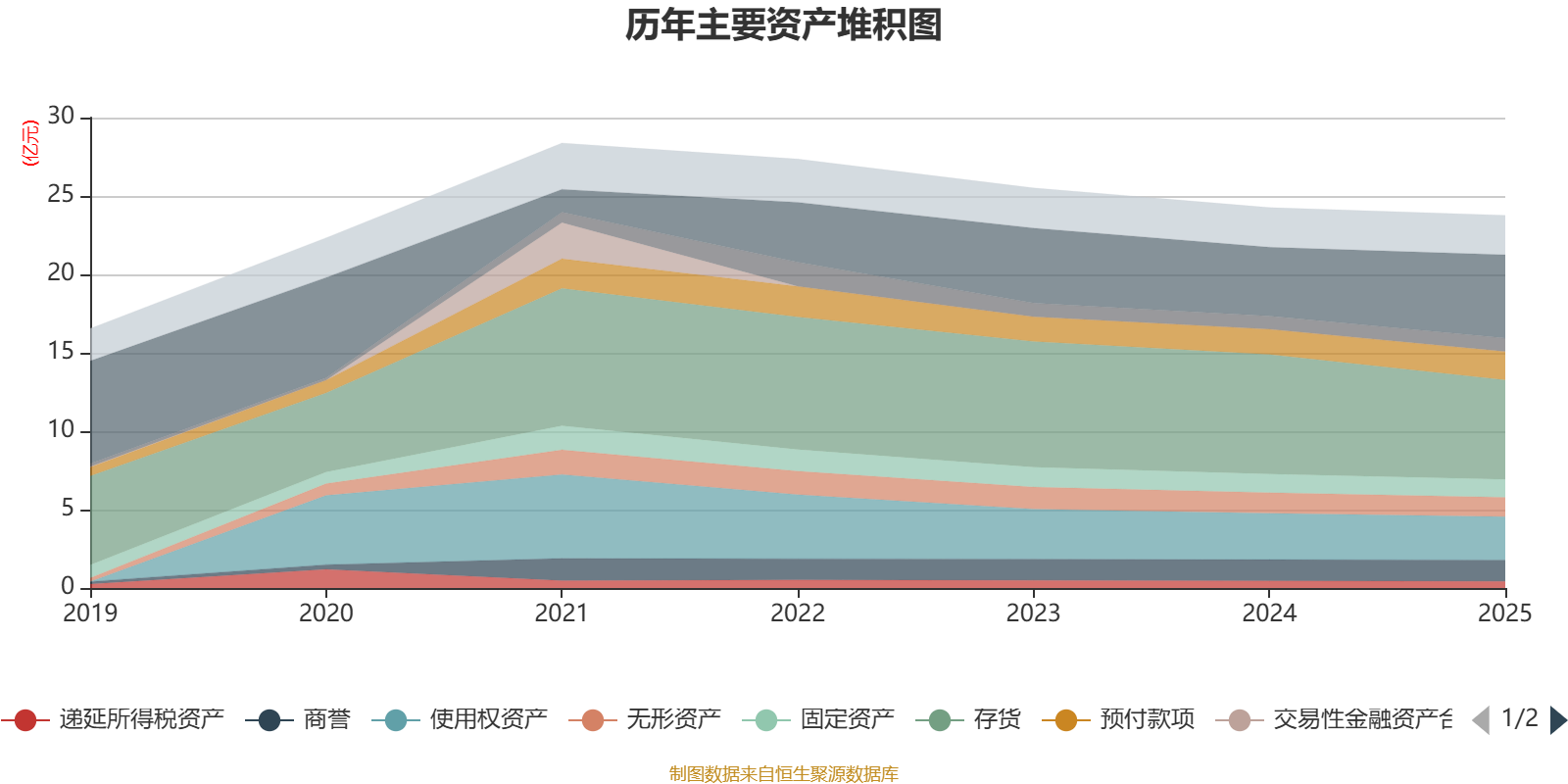 资产重大变化方面,截至2025年末,公司存货较上年末减少16.95%,占公司总资产比重下降4.79个百分点;货币资金较上年末增加21.29%,占公司总资产比重上升4.3个百分点;预付款项较上年末增加12.57%,占公司总资产比重上升0.99个百分点;使用权资产较上年末减少6.44%,占公司总资产比重下降0.55个百分点。