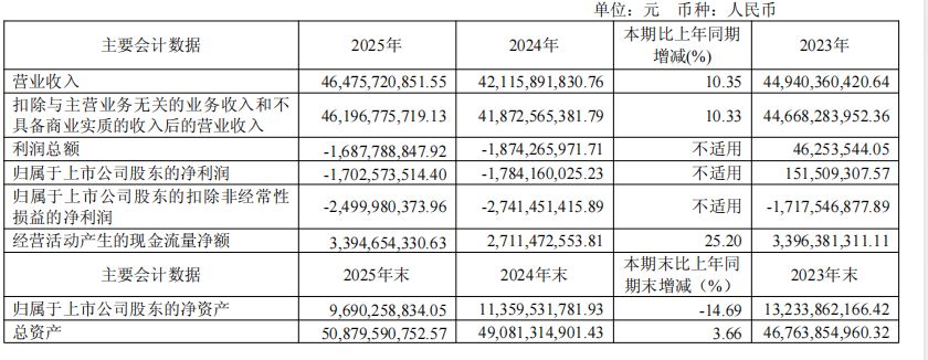 4月3日晚间,江淮汽车(600418.SH)发布的2025年年度报告显示,2025年,公司实现营业收入约464.76亿元,同比增长10.35%;归属于上市公司股东的净利润为-17.03亿元。