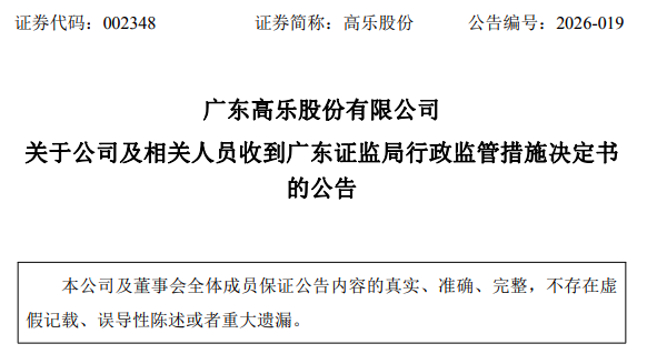 根据相关规定,广东证监局决定对高乐股份采取责令改正的行政监管措施,对朱俭勇、彭瀚祺、马少滨采取出具警示函的行政监管措施。