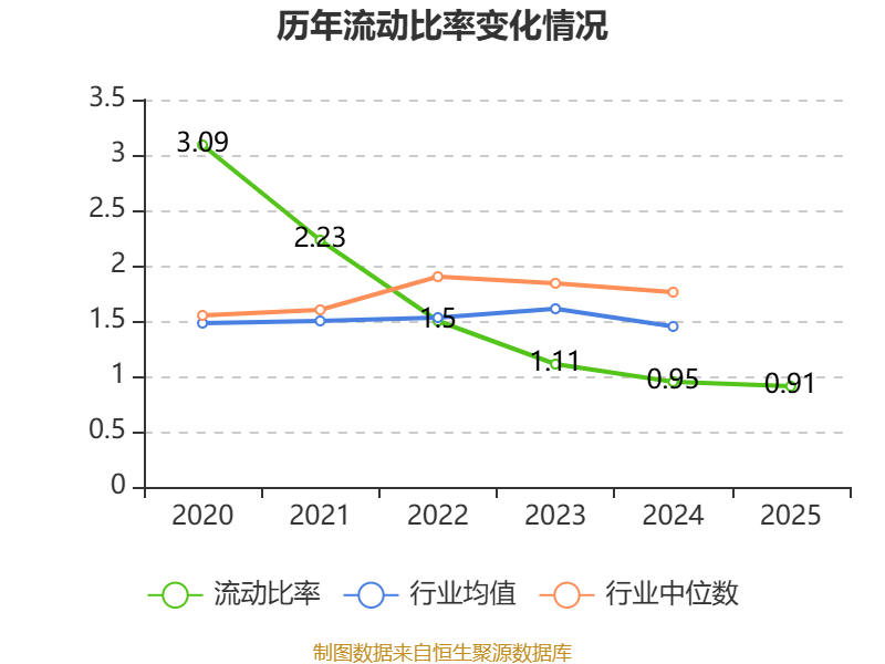 2025年,公司流动比率为0.91,速动比率为0.72。