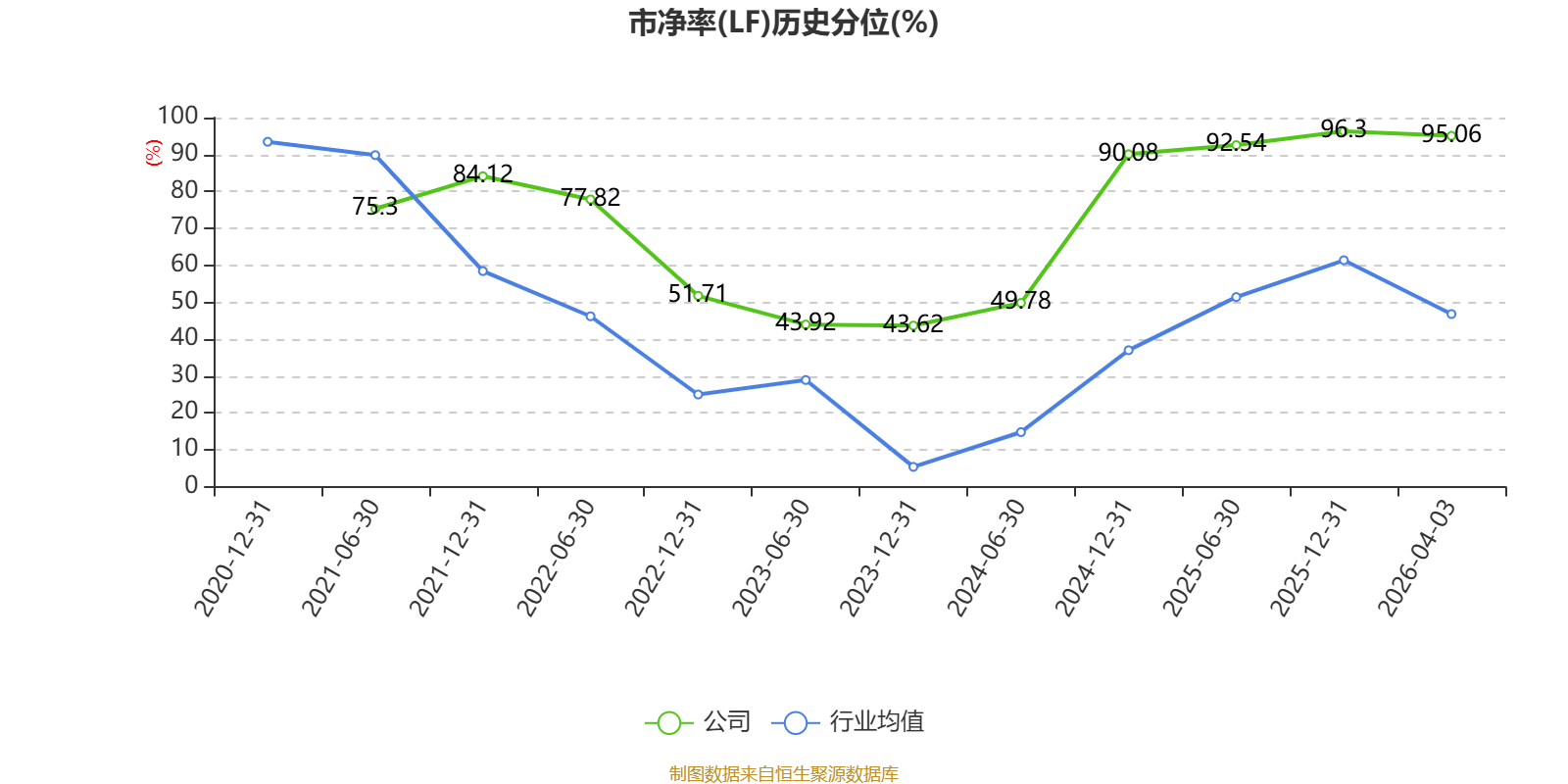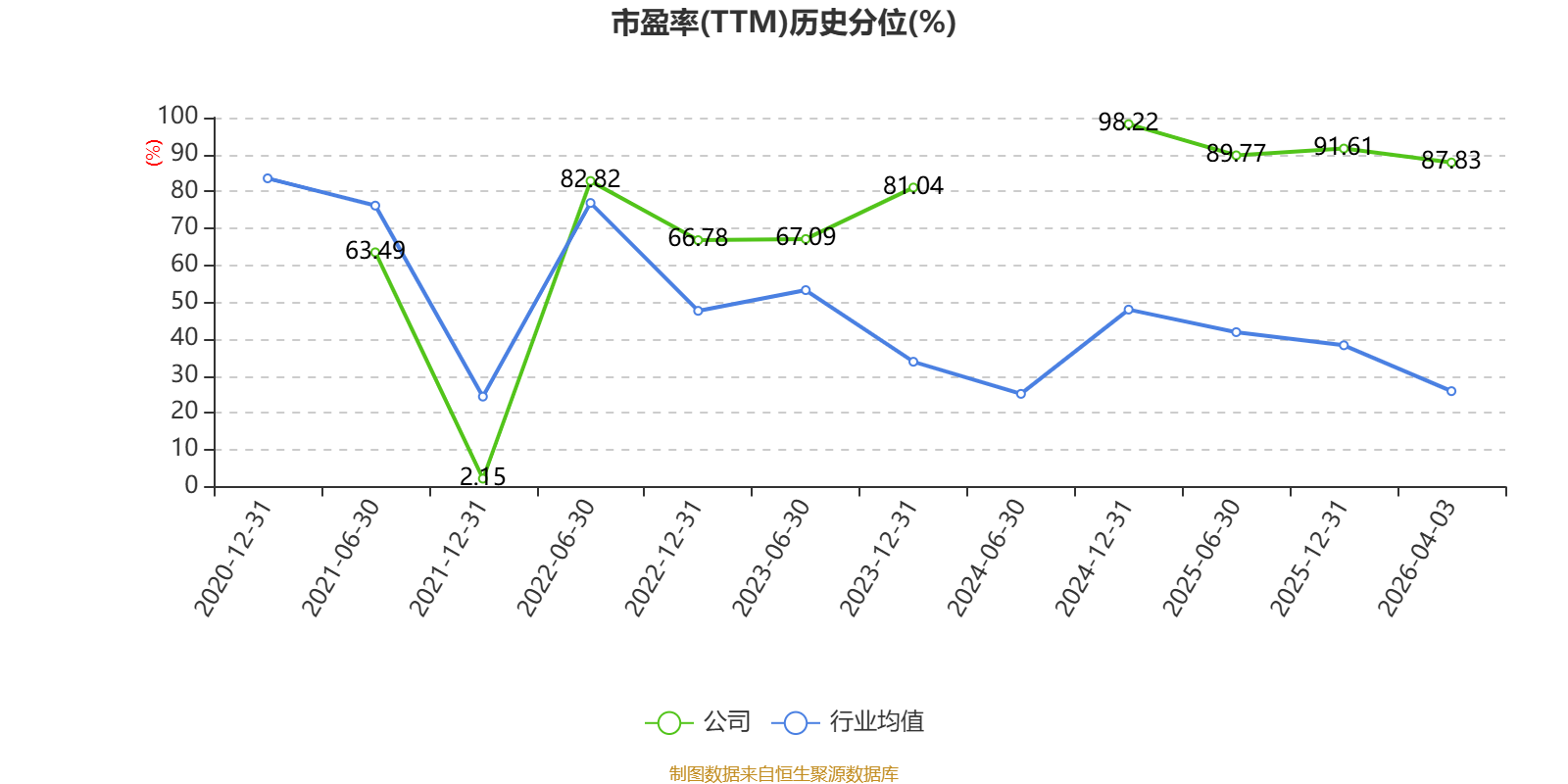 市盈率、市净率为负时,不显示当期分位数,会导致折线图中断。