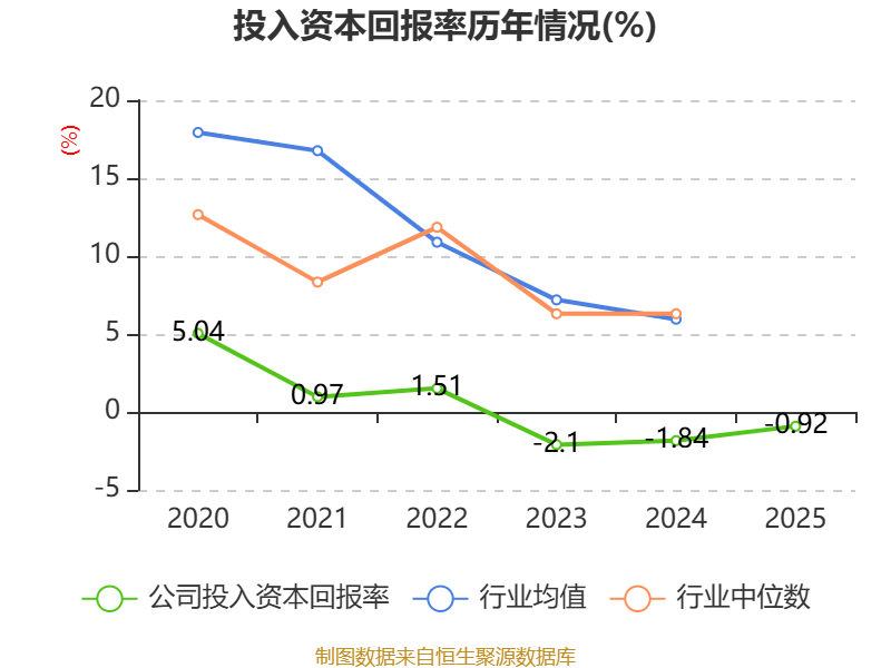 数据显示,2025年公司加权平均净资产收益率为0.8%,较上年同期上升0.42个百分点。公司2025年投入资本回报率为-0.92%,较上年同期上升0.92个百分点。