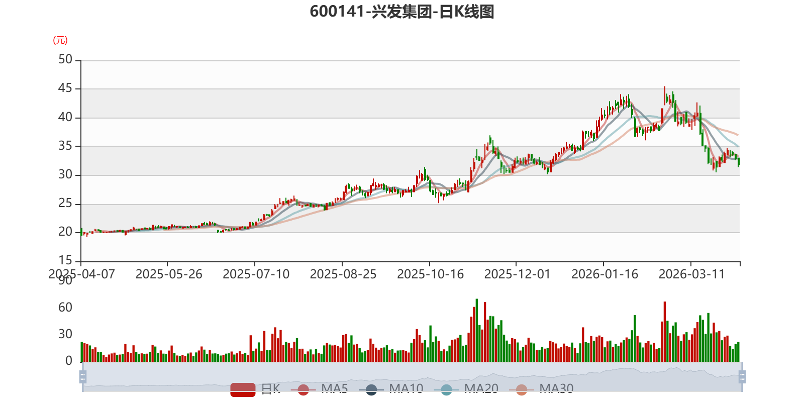 以4月3日收盘价计算,兴发集团目前市盈率(TTM)约为25.66倍,市净率(LF)约1.74倍,市销率(TTM)约1.31倍。