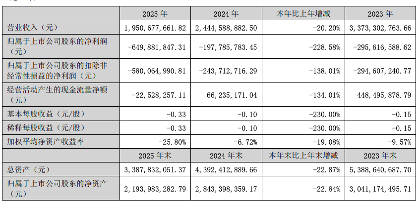 2025年公司加权平均净资产收益率为-25.80%,较上年的-6.72%大幅下滑19.08个百分点。