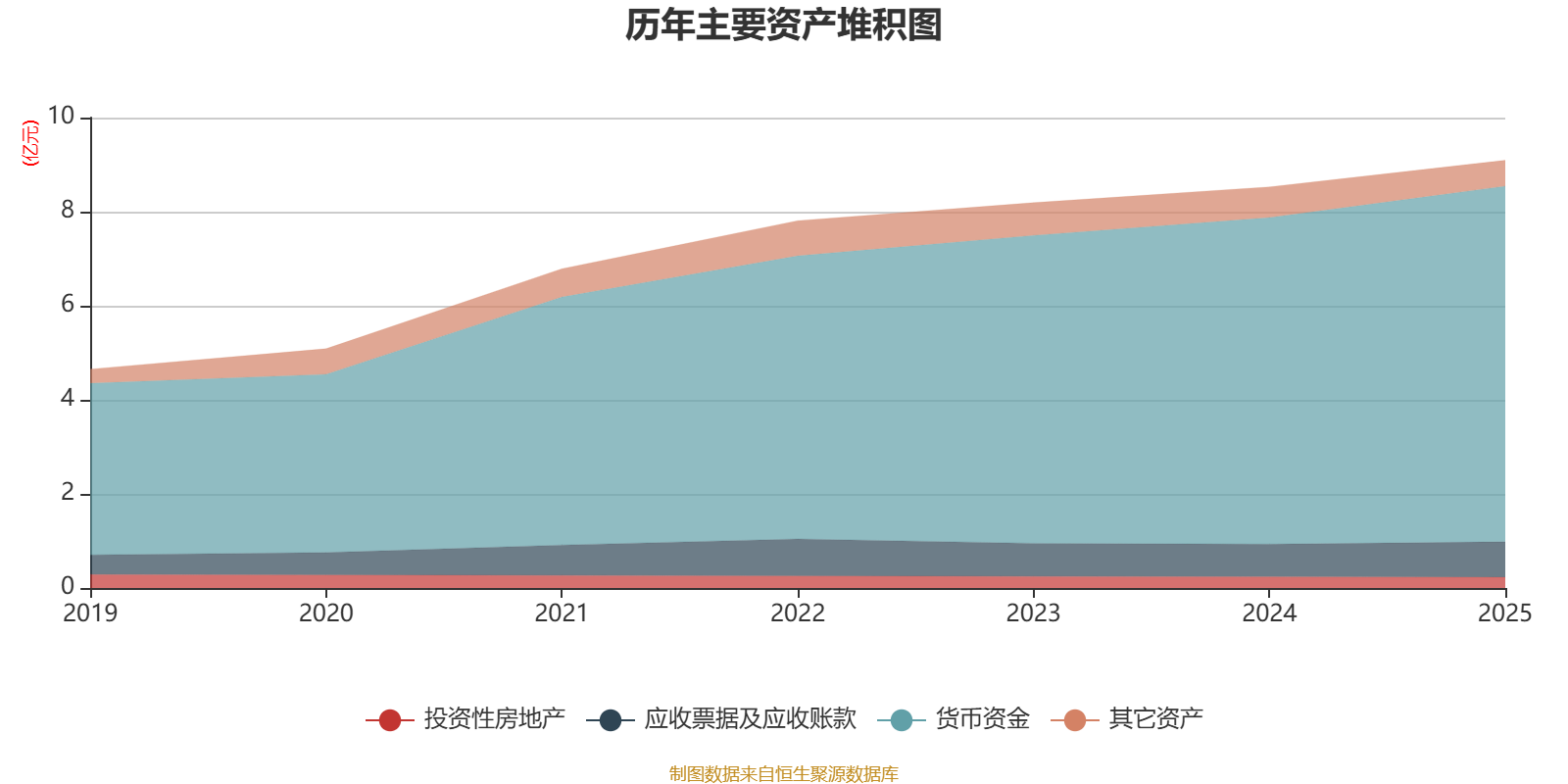 资产重大变化方面,截至2025年末,公司货币资金较上年末增加8.92%,占公司总资产比重上升1.73个百分点;其他非流动资产较上年末减少52.65%,占公司总资产比重下降0.87个百分点;预付款项较上年末减少25.98%,占公司总资产比重下降0.42个百分点;投资性房地产较上年末减少4.21%,占公司总资产比重下降0.28个百分点。