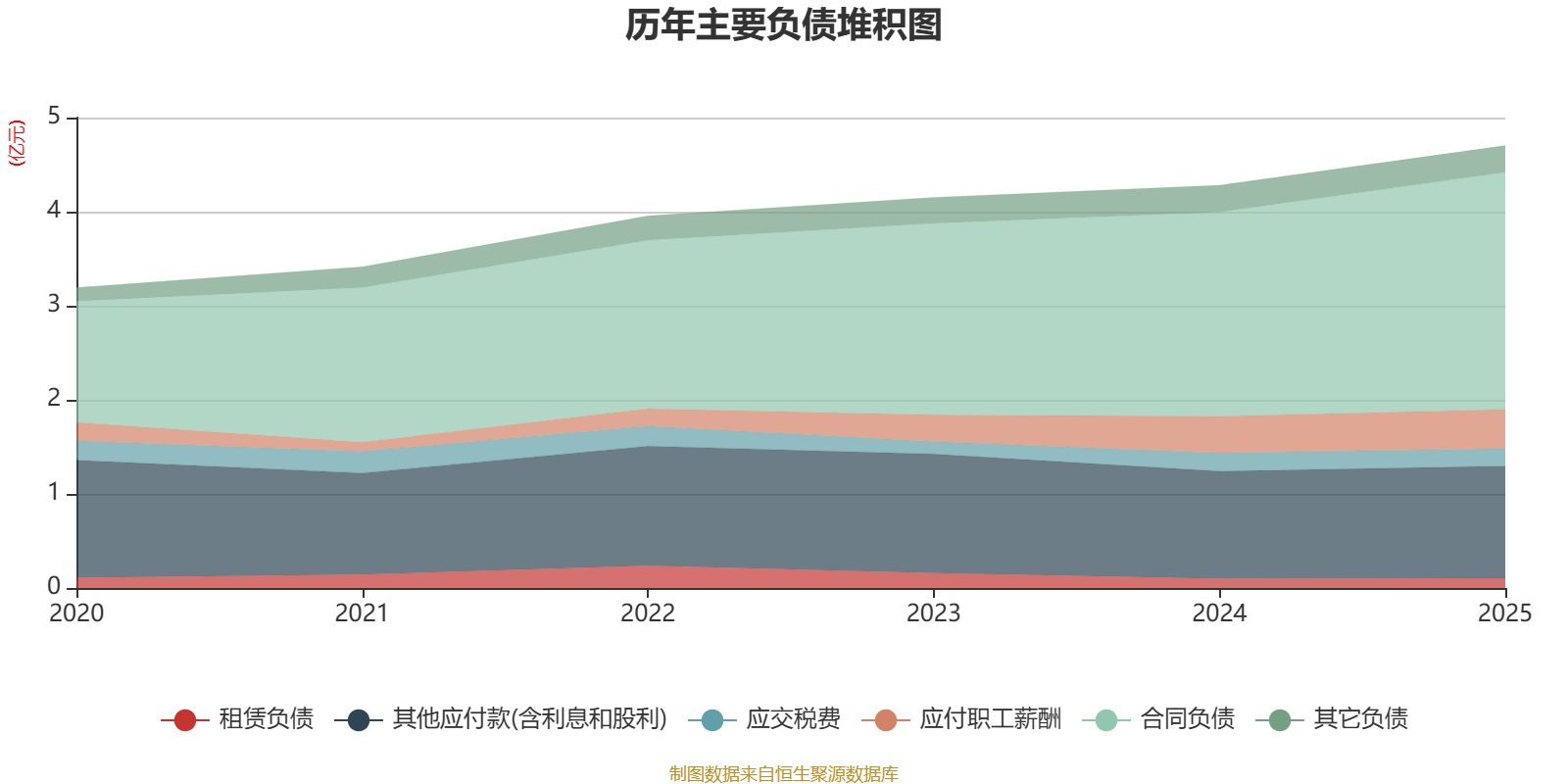 负债重大变化方面,截至2025年末,公司合同负债较上年末增加15.95%,占公司总资产比重上升2.22个百分点;其他应付款(含利息和股利)较上年末增加4.56%,占公司总资产比重下降0.26个百分点;应交税费较上年末减少5.08%,占公司总资产比重下降0.25个百分点;一年内到期的非流动负债较上年末减少5.41%,占公司总资产比重下降0.12个百分点。