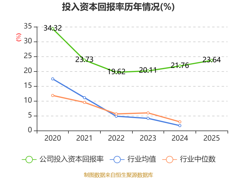 数据显示,2025年公司加权平均净资产收益率为25.37%,较上年同期上升1.37个百分点。公司2025年投入资本回报率为23.64%,较上年同期上升1.88个百分点。