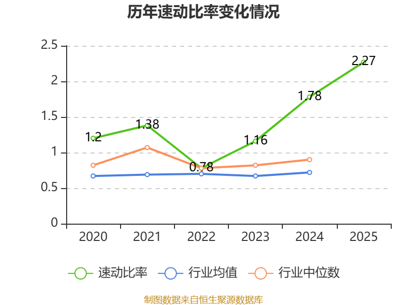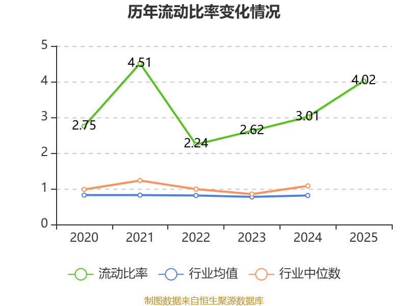 2025年,公司流动比率为4.02,速动比率为2.27。