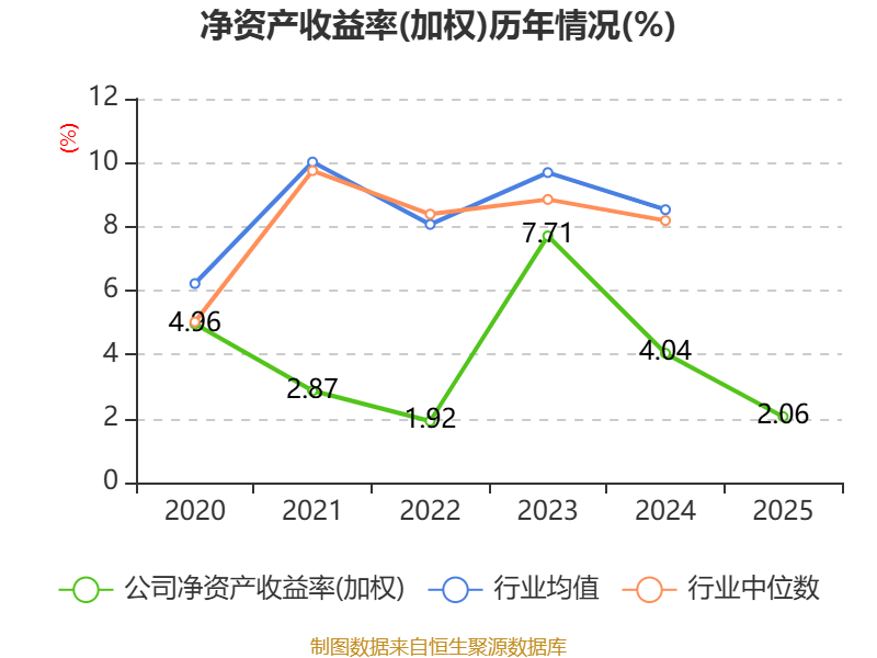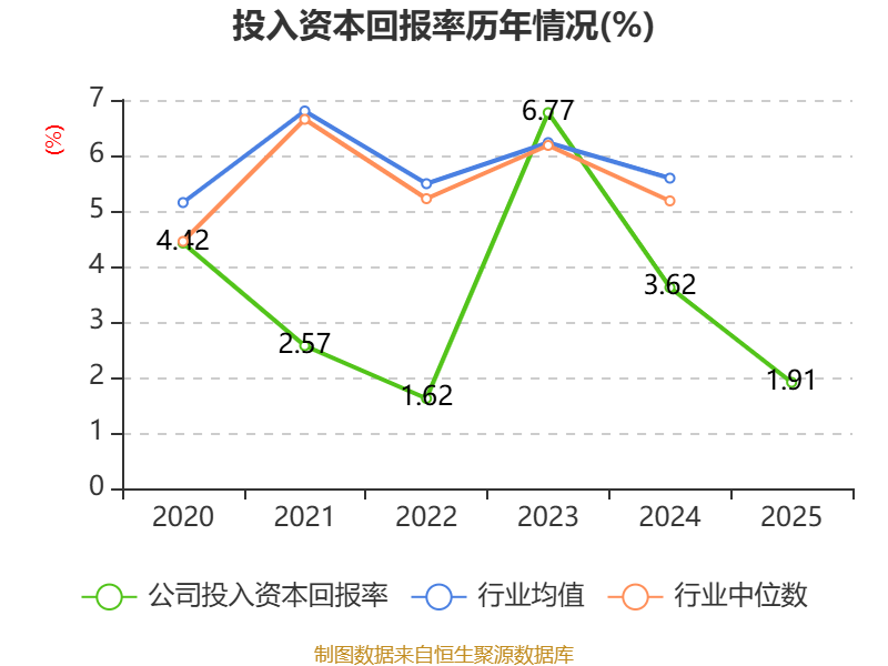 数据显示,2025年公司加权平均净资产收益率为2.06%,较上年同期下降1.98个百分点。公司2025年投入资本回报率为1.91%,较上年同期下降1.71个百分点。