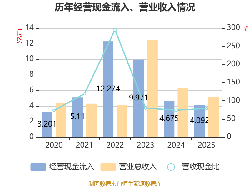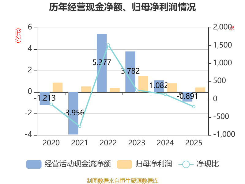 截至2025年,公司经营活动现金流净额为-8908.93万元,同比减少1.97亿元;筹资活动现金流净额-9143.01万元,同比减少2563.41万元;投资活动现金流净额-2761.14万元,上年同期为-1099.97万元。