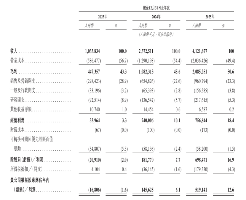 财务数据显示,2023年至2025年,米连科技的营业收入分别约为10.34亿元、23.73亿元、41.22亿元;同期,其净利润分别约为-0.17亿元、1.46亿元、5.19亿元。两年完成从亏损到暴利的华丽转身。