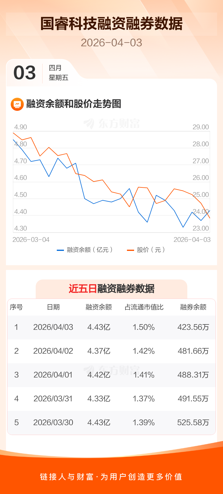 交易所最新数据显示,国睿科技于2026年4月3日获融资买入1472.37万元,融资偿还820.53万元,当日融资净买入651.84万元。目前,该股融资余额4.43亿,占流通市值比例为1.50%。
