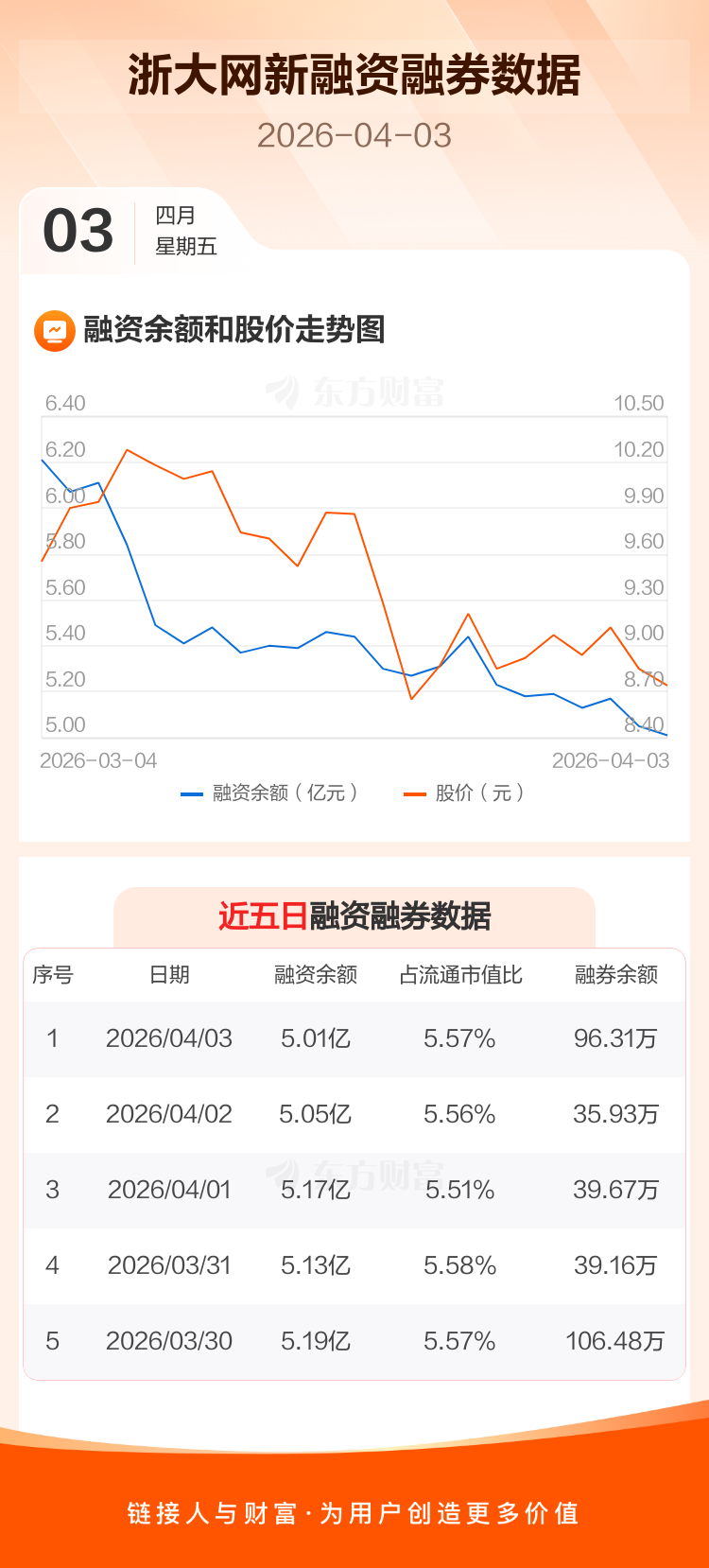 交易所最新数据显示,浙大网新于2026年4月3日获融资买入682.03万元,融资偿还1155.81万元,当日融资净偿还473.78万元。目前,该股融资余额5.01亿,占流通市值比例为5.57%。