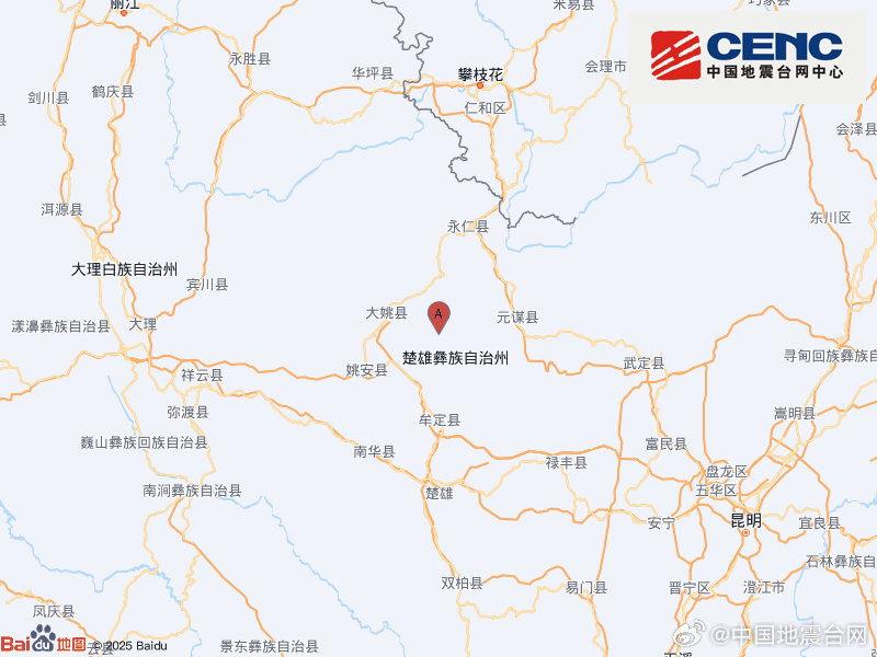 中国地震台网自动测定:04月04日15时52分在云南楚雄州大姚县附近(北纬25.67度,东经101.55度)发生3.4级左右地震,最终结果以正式速报为准。