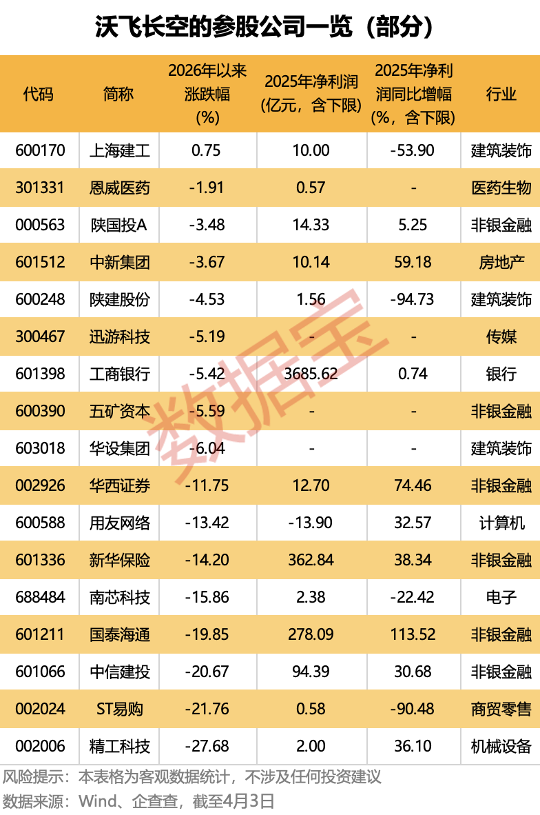 据不完全统计,A股市场参与投资沃飞长空的上市公司近20家,主要分布于非银金融、建筑装饰、计算机、电子、传媒等行业。