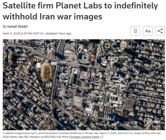 总部位于美国旧金山的一家遥感卫星数据公司——星球实验室(Planet Labs)4月4日宣布,应美国政府要求,将无限期暂停发布伊朗及中东冲突地区的卫星影像。