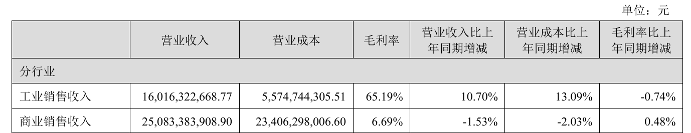 值得注意的是,云南白药或存在盈利结构失衡的问题。贡献公司六成营收的商品销售业务,毛利率仅为6.69%,同比微增0.48个百分点,依旧徘徊在“薄利多销”的边缘;相比之下,工业销售板块毛利率高达65.19%,虽同比减少0.74个百分点,盈利能力仍属强劲。