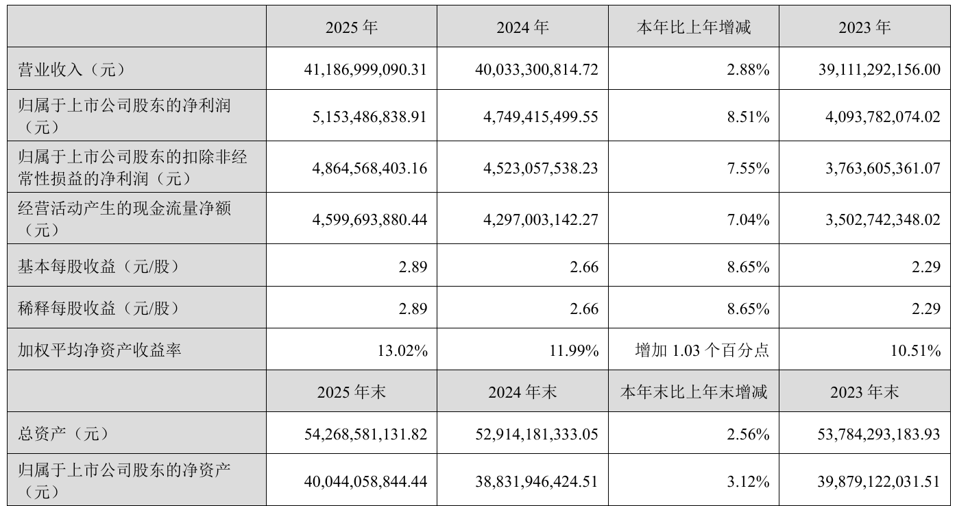 日前,云南白药(000538)发布2025年年度报告,公司全年实现营收411.87亿元,同比上升2.88%;归母净利润为51.53亿元,同比上升8.51%,增速较2024年的16.02%大幅放缓;扣非净利润为48.65亿元,同比上升7.55%。