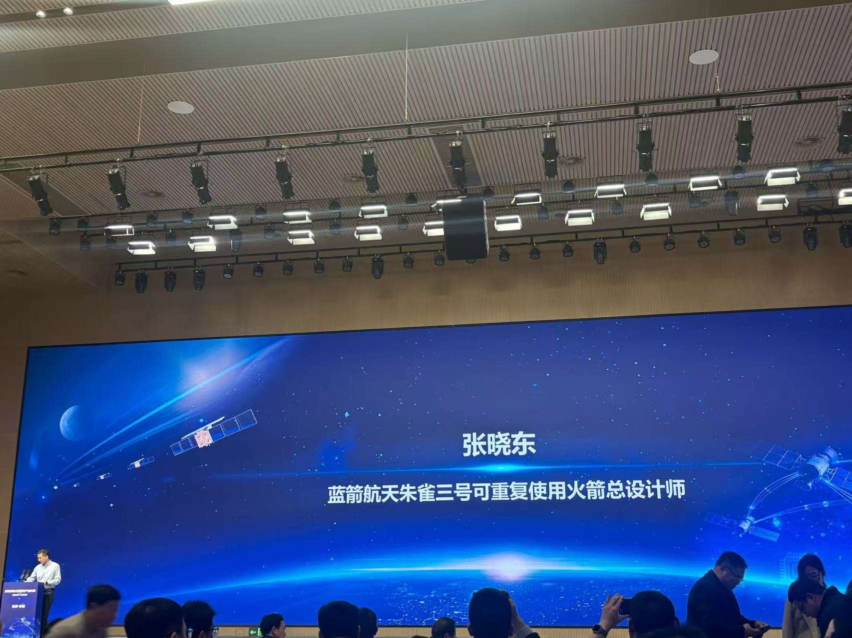 (蓝箭航天朱雀三号可重复使用火箭总设计师张晓东,记者李明明大会现场拍摄)