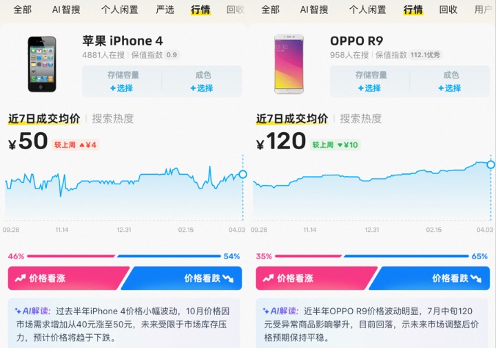 “爱回收”的工作人员和环龙商场里的手机回收商也表示,除却那些收藏级别的产品,旧手机的回收价一直遵循“机型越久,回收价越低”的规律。从回收平台及其他二手交易平台数据看,部分手机型号回收价上涨,并没有改变“机型越久,回收价越低”的规律。