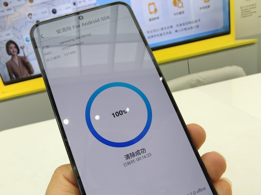 在“爱回收”的一个网点,工作人员向记者演示了“深度清除”:手机退出用户账号后,先操作“恢复出厂设置”,再登录回收网点账号,使用平台开发的清除软件,由软件对手机进行多次数据擦写,最后清除所有数据。