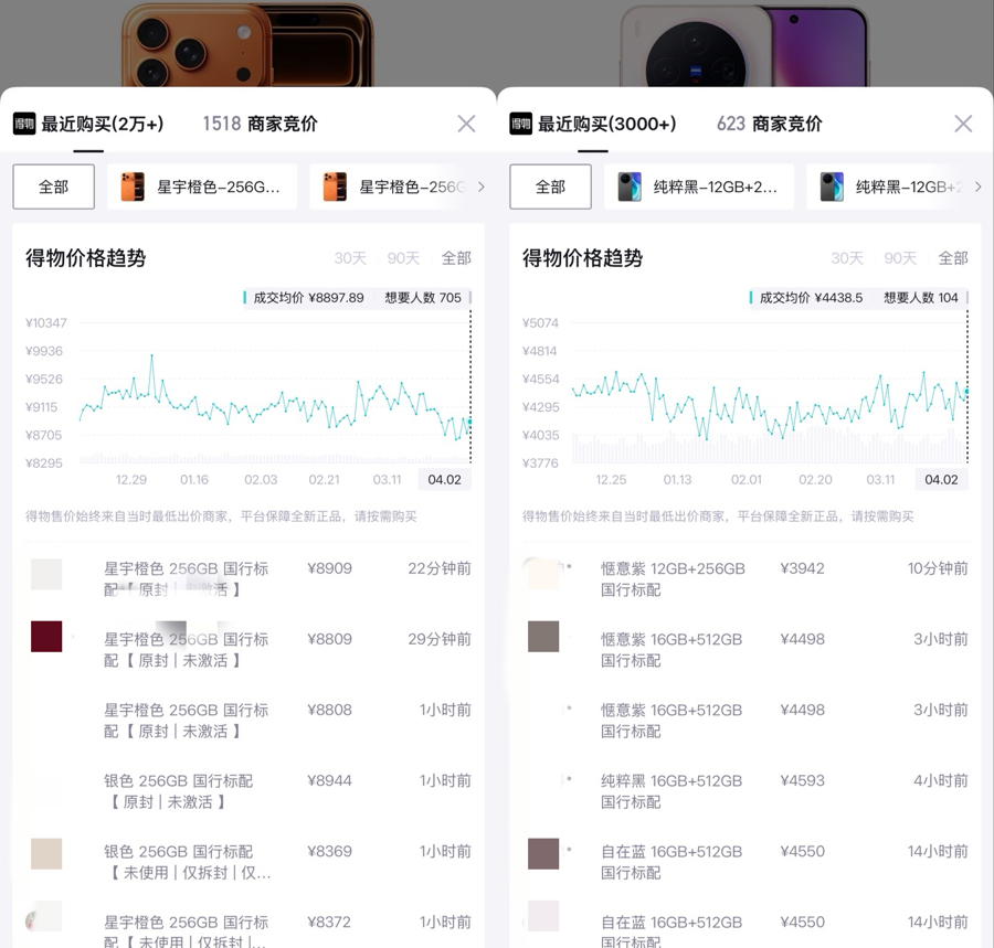 部分自媒体声称涨幅翻数倍的旧款手机,实际价格变化没有网传那么夸张