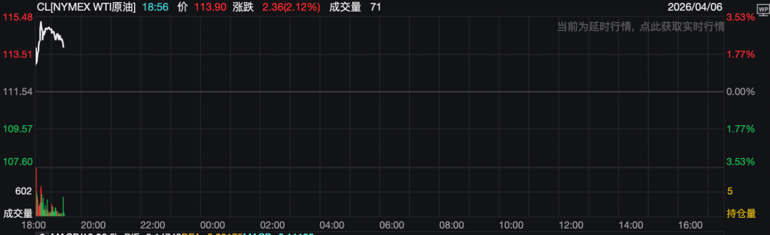 随着美伊对峙持续升级,地区紧张局势骤然加剧。4月6日亚洲交易时段,国际油价大幅拉升,WTI原油一度涨超3%,站上115美元/桶;ICE布油站上111美元/桶。