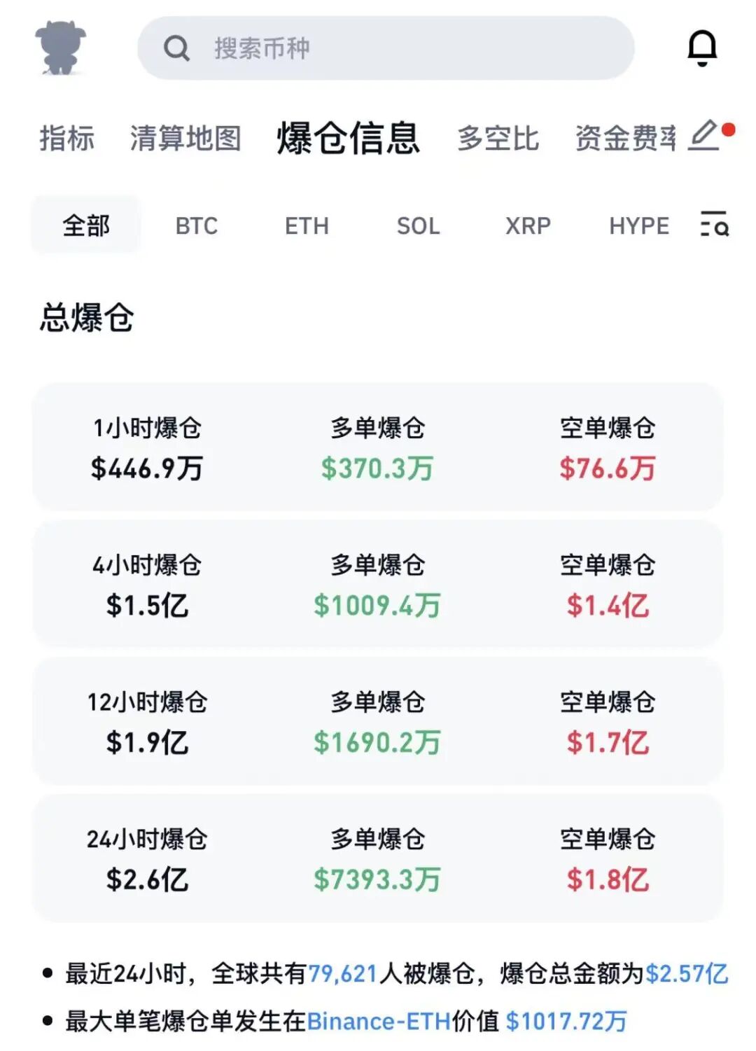 4月6日亚洲交易时段,加密货币市场全线大涨,比特币一度突破69000美元。截至发稿,比特币、以太坊、HYPE等涨幅超过2%。CoinGlass数据显示,过去24小时,加密货币市场共有近8万人爆仓,爆仓总金额为2.57亿美元。