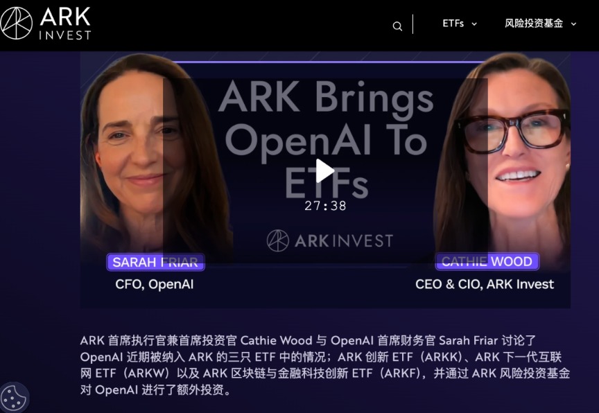 2024年起,方舟投资就通过其ARKVX持有OpenAI股权,并多次增持。